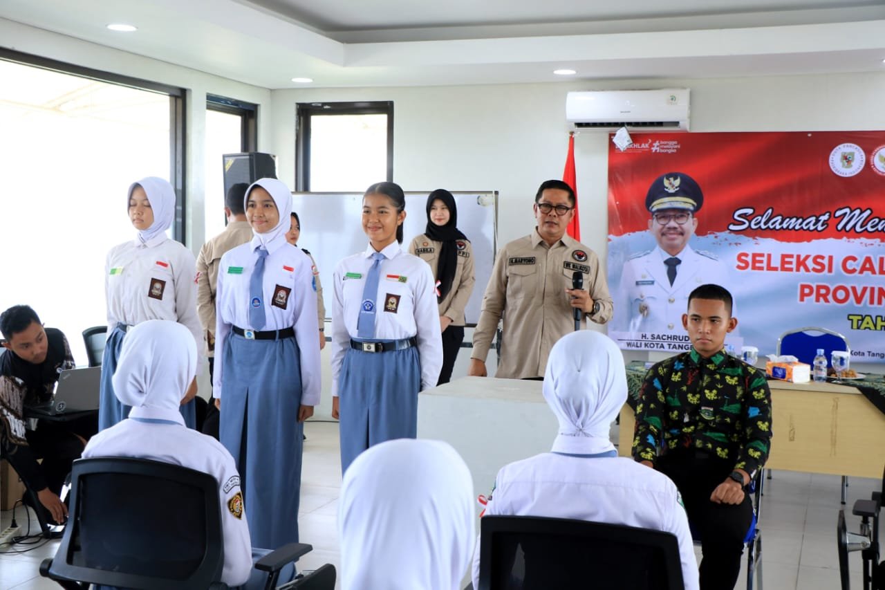 Tangerang,- Kota Tangerang kirim 20 pelajar terpilih untuk mengikuti seleksi Calon Pasukan Pengibar Bendera Pusaka (Paskibraka) Tingkat Provinsi dan Nasional Tahun 2025. Dan untuk mengoptimalkan persiapan mereka sebelum masuk tahap seleksi tingkat provinsi dan nasional, para calon paskibraka diberikan pembekalan oleh Badan Kesatuan Bangsa dan Politik (Kesbangpol) di Grha Bhakti Karya (GBK) Kota Tangerang yang diadakan dari 20 April hingga 26 April 2025.