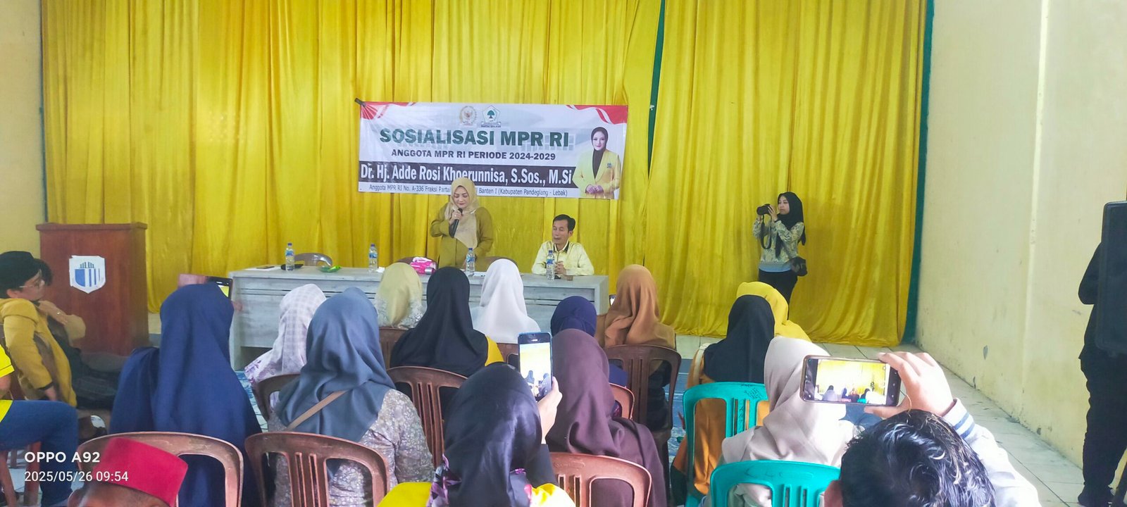 Sementara itu Dodi Sofyan.S.Sos.,M.Pd anggota DPRD Kabupaten Lebak dari Fraksi Golkar daerah pemilihan enam menambahkan, Alhamdulillah pada hari ini kehadiran ibu Adde Rosi disamping tadi sudah menyampaikan TAP MPR, juga bisa bersilaturahmi dengan masyarakat sehingga dapat dan bisa menggali informasi – informasi dari masyarakat terkait keadaan yang ada di masyarakat.