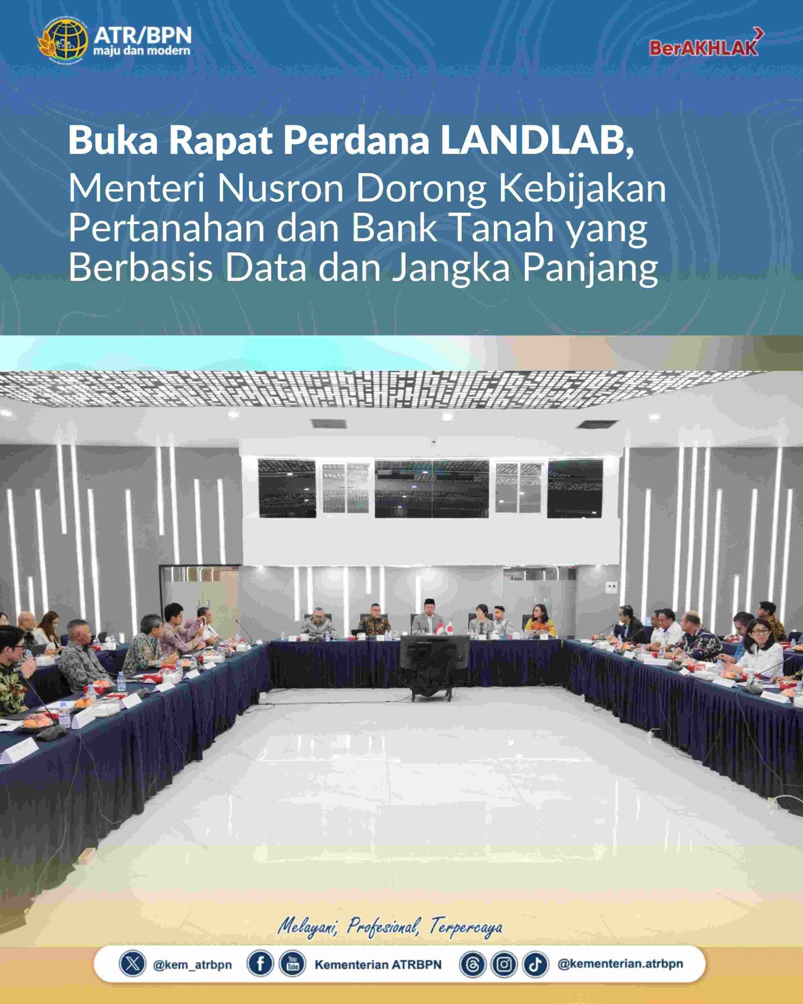 Jakarta,- Menteri Agraria dan Tata Ruang/Kepala Badan Pertanahan Nasional (ATR/BPN), Nusron Wahid, resmi membuka rapat perdana Joint Coordinating Committee (JCC) untuk proyek Capacity Development for Land Development Policy Making and Land Bank Management Improvement (LANDLAB), di Kementerian ATR/BPN, Jakarta, Rabu (14/05/2025).