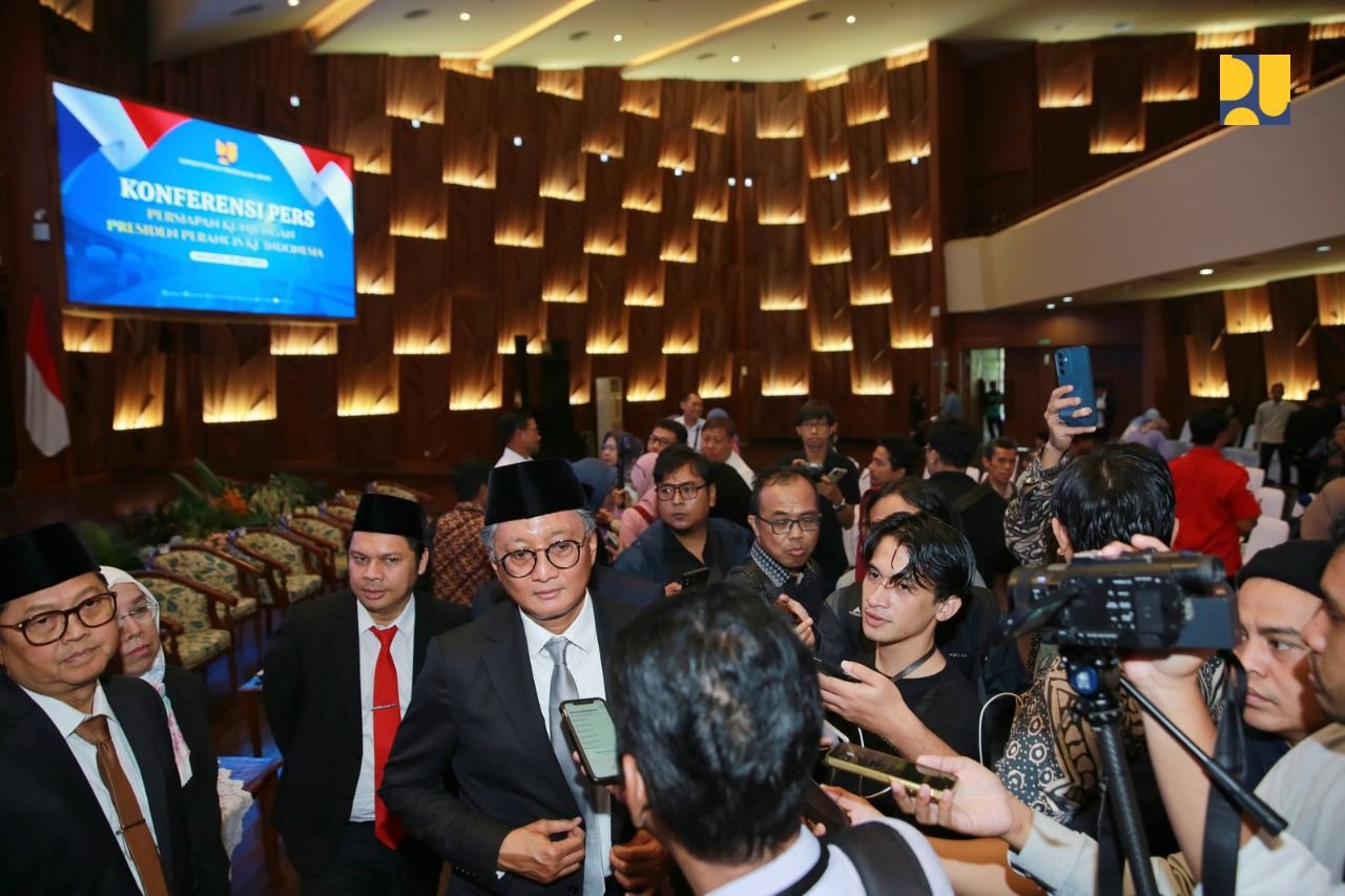 Jakarta – Menteri Pekerjaan Umum (PU) Dody Hanggodo didampingi Wakil Menteri PU Diana Kusumastuti menggelar konferensi pers pada Senin (26/5/2025) di Auditorium Kementerian PU, Jakarta. Dalam kesempatan tersebut, Menteri Dody menyampaikan sejumlah hal strategis yang tengah menjadi fokus Kementerian PU, mulai dari persiapan kunjungan kenegaraan Presiden Prancis Emmanuel Macron, hingga dukungan terhadap program prioritas nasional Presiden Prabowo Subianto seperti Sekolah Rakyat (SR) dan Makan Bergizi Gratis (MBG).