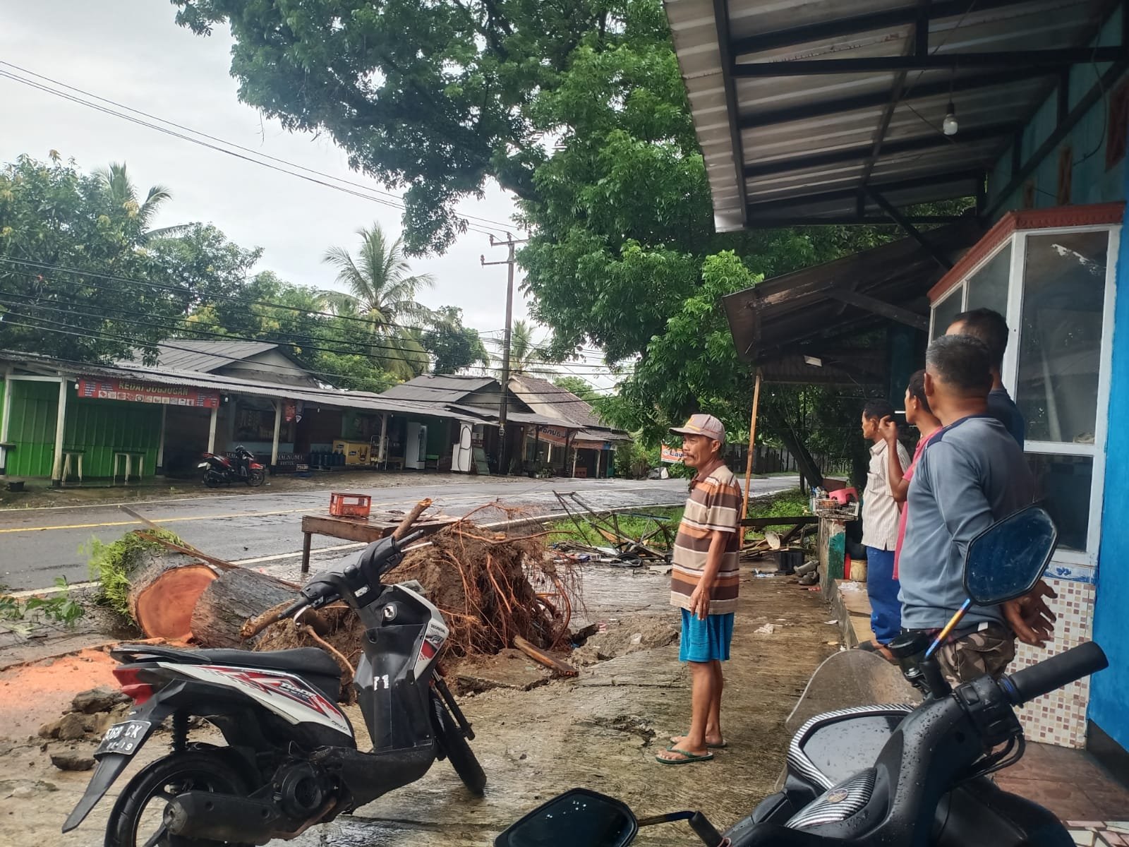 Iwan salah seorang warga setempat meminta kepada pihak terkait agar segera mengevakuasi pohon yang roboh tersebut agar tidak menumpuk di pinggir jalan, serta berharap agar pohon-pohon yang rentan tumbang agar segera dilakukan penebangan, untuk mengantisipasi hal-hal yang tidak di harapkan. ujar Iwan.