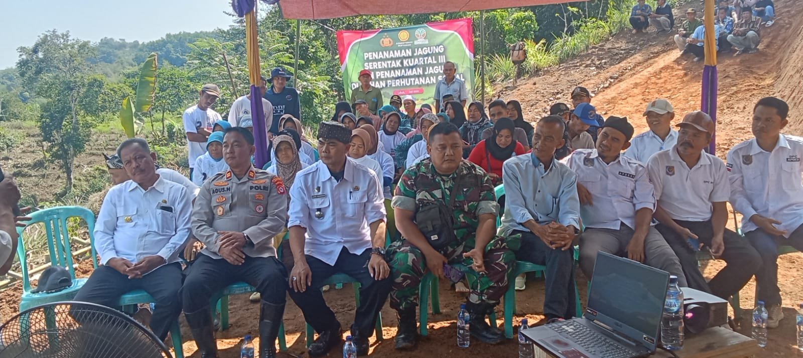 Penanaman jagung dilaksanakan di lahan Perhutanan Sosial, dan dihadiri oleh Camat Bojongmanik, Kepala Desa se-Kecamatan Bojongmanik, Kader Posyandu jajaran personel Polsek Bojongmanik, Danramil, serta para petani yang tergabung dalam Gapoktan setempat.